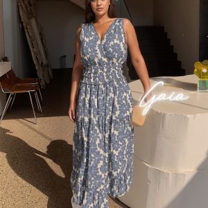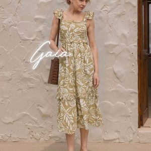Light Brown Printed Long Dress