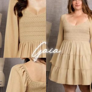 Short Beige Dress with Long Sleeves